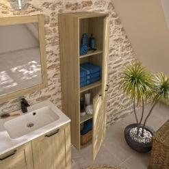 Badkamerkast Allibert Santiago Kolom 2 Deurs Soft Close Eiken Halifax 40x156x37 Cm