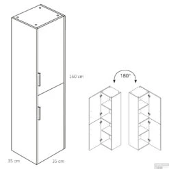 B&w-luxury Vedere Kast Hoog 35×33.5×172 Cm. Deur Rechts Verweerd Eiken