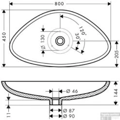 De wastafel wordt geleverd met een afmeting van 120.5×51.5×9 cm, en de diameter van het afvoergat is 43 mm.